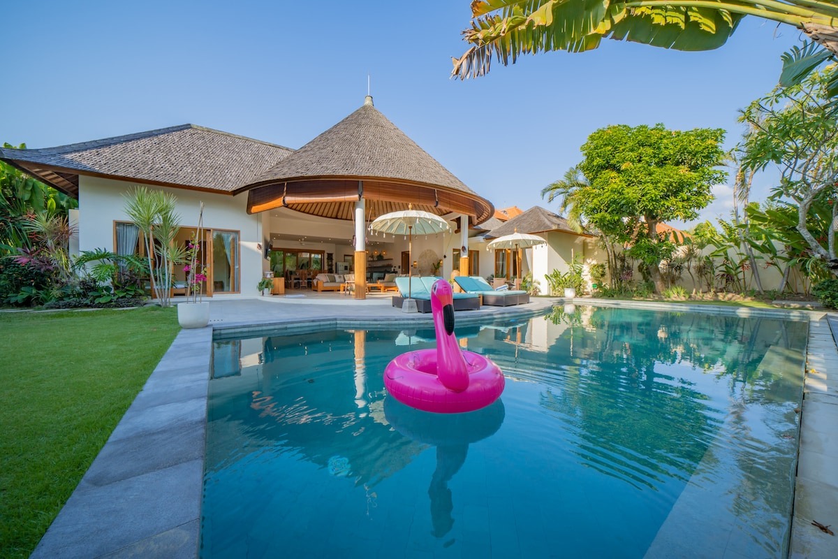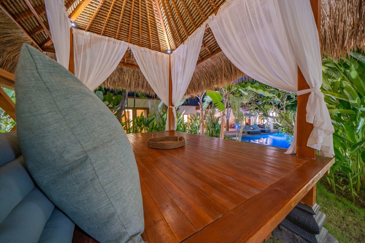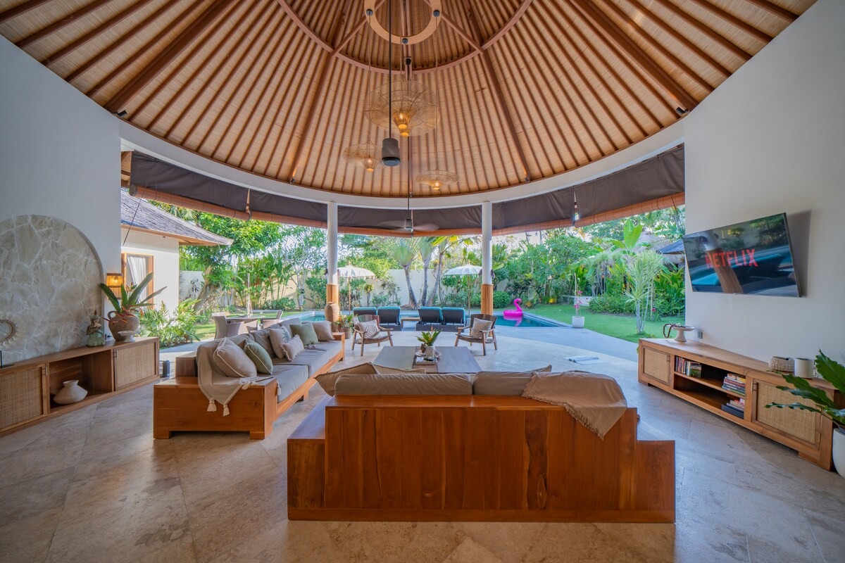 Discover the perfect blend of comfort and luxury in our spacious 5-bedroom villa hosted by Manolia Stays in Umalas, Bali. With a large private pool, lush tropical garden, and relaxing gazebo, this villa is ideal for families, couples, or groups of friends.