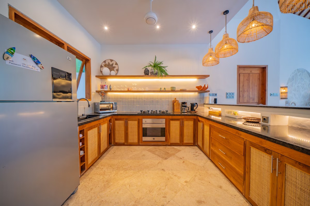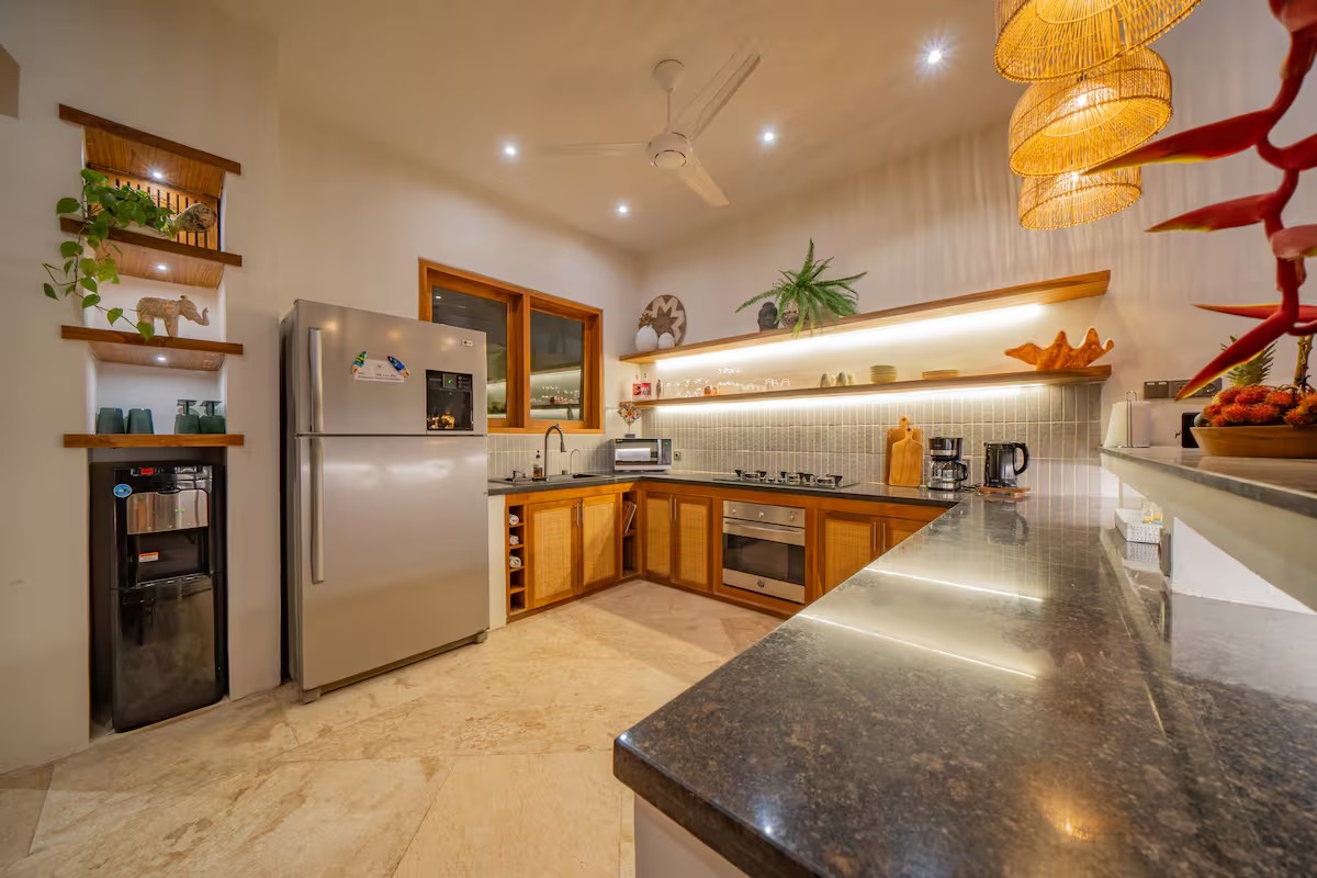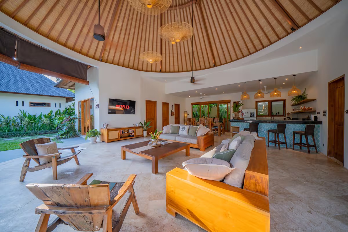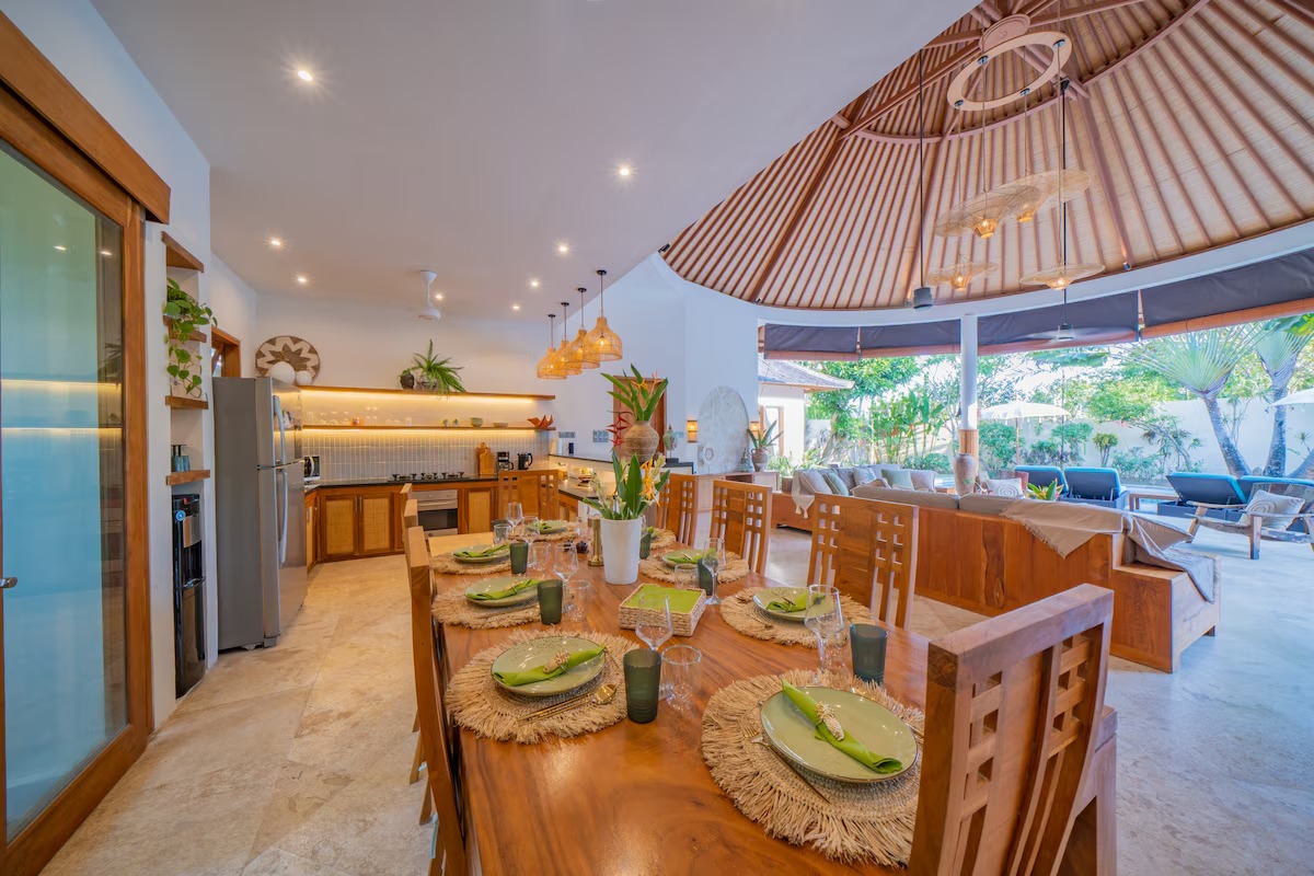 • Modern Aesthetic with Balinese style: The villa is fully furnished and includes a spacious open living area, dining area, and a fully equipped kitchen.