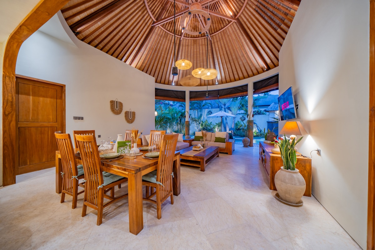 • Modern Aesthetic with Balinese style: The villa is fully furnished and includes a spacious open living area, dining area, and a fully equipped kitchen.